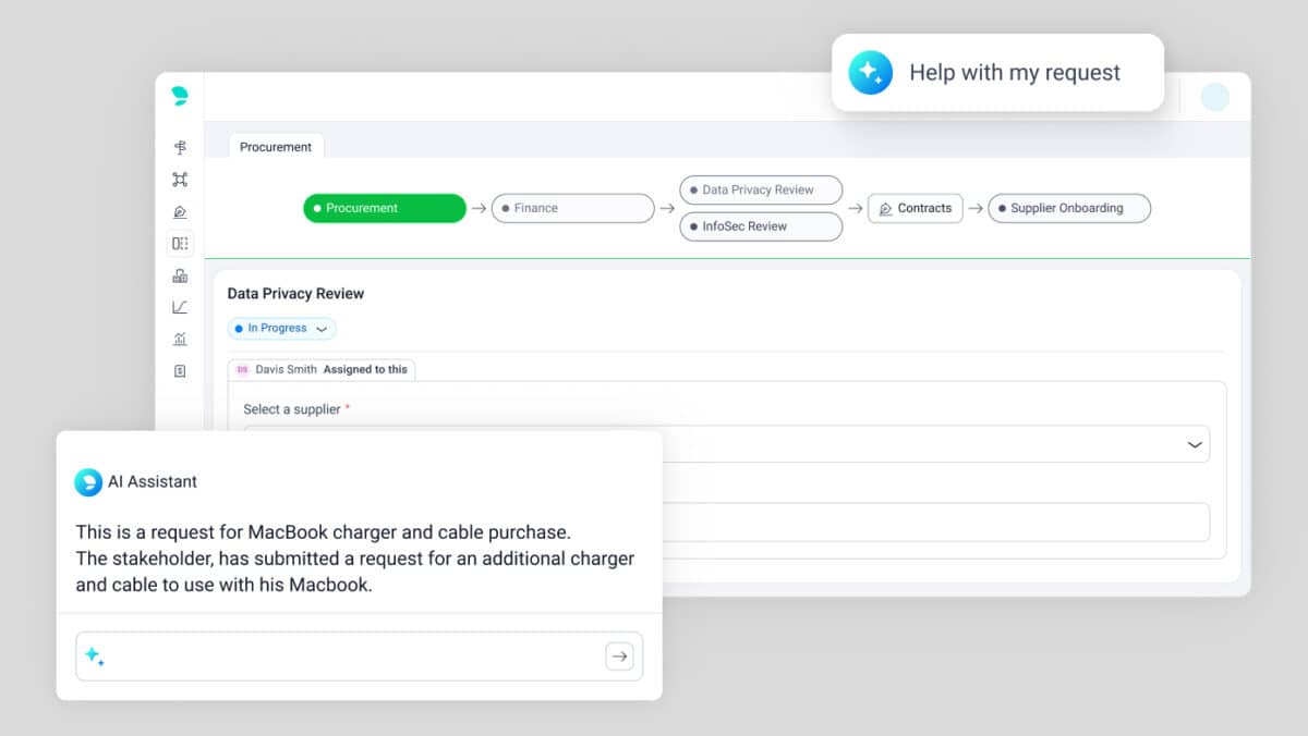 Use AI-native features to manage business requests, supplier onboarding, and project workflows in one centralized hub.